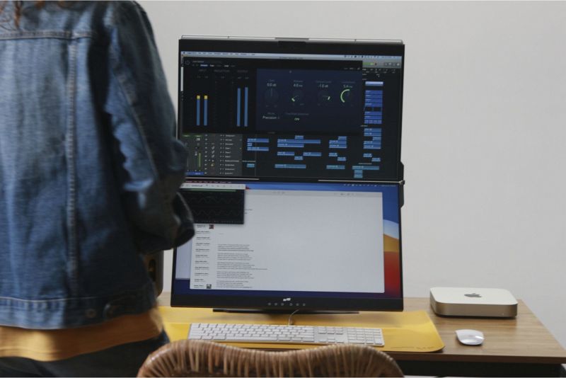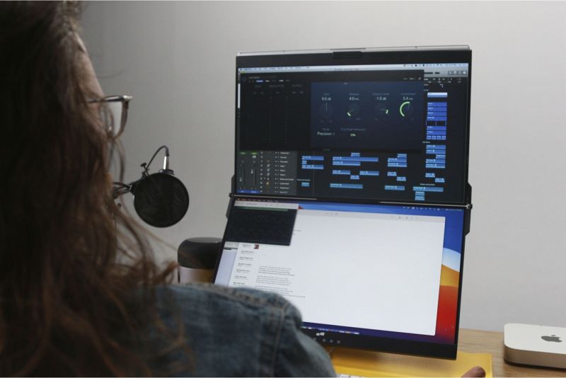 Die duale Bildschirmerweiterung Geminos von Mobile Pixels hilft, stets den Überblick zu behalten. Dank der horizontalen Anordnung der beiden Bildschirme wird ergonomisches Arbeiten und Multitasking ermöglicht. Der Bewegungsradius von Augen und Nacken wird durch die Anordnung verringert und so wird für mehr Komfort am Arbeitsplatz gesorgt. Der flexible Doppelbildschirm lässt sich elegant und stufenlos einstellen und passt sich so jeder Situation spielend leicht an. Die Halterung, an der die beiden Bildschirme befestigt sind, bietet eine integrierte Docking Station - weniger Platz für Chaos, mehr Platz für Kreativität.