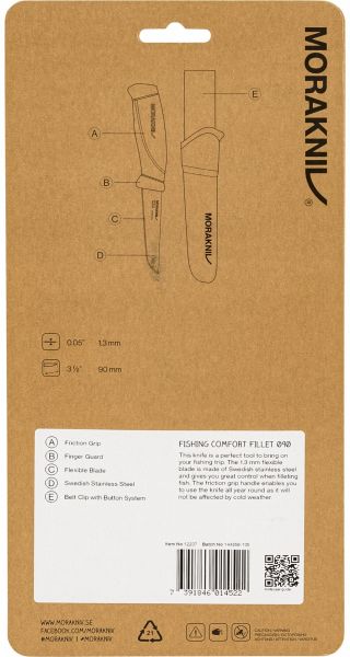 Das Messer hat einen ergonomisch geformten Griff, einen Fingerschutz und eine 1,9 mm starke Klinge aus Edelstahl. Es ist ideal für das Arbeiten unter schwierigen Wetterverhältnissen. Der Verwendungszweck ist das Ausnehmen und Filetieren von Fisch. Das Messer kann am Gürtel oder am Rucksack befestigt werden.