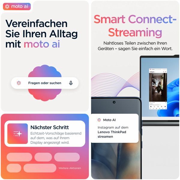 Angetrieben vom MediaTek Dimensity 7300 Ultra Prozessor und unterstützt durch eine leistungsstarke NPU (Neural Processing Unit) bietet das Edge 60 eine flüssige Benutzererfahrung, blitzschnelles Multitasking und KI-gestützte Funktionen - ideal für Fotografie, Videoverarbeitung und smarte Nutzung im Alltag. Der große Arbeitsspeicher von 12 GB RAM in Kombination mit 512 GB internem Speicher macht das Gerät bereit für jede Aufgabe.