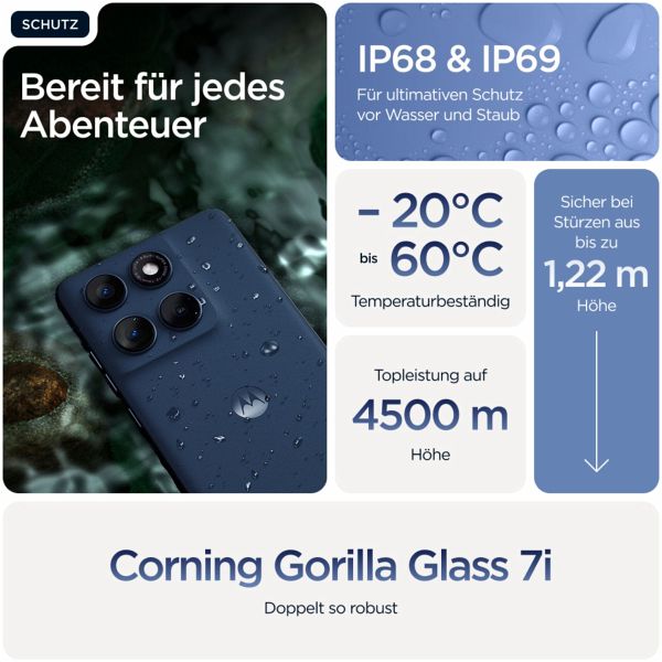 Mit einer 50-MP-Hauptkamera mit optischer Bildstabilisierung (OIS) sowie einer Ultraweitwinkelkamera liefert das Edge 60 gestochen scharfe Fotos und Videos - selbst bei schlechten Lichtverhältnissen. Der leistungsstarke 5000-mAh-Akku lässt sich dank 68-Watt-TurboPower-Schnellladen in kürzester Zeit aufladen, sodass du auch bei intensiver Nutzung lange durch den Tag kommst.