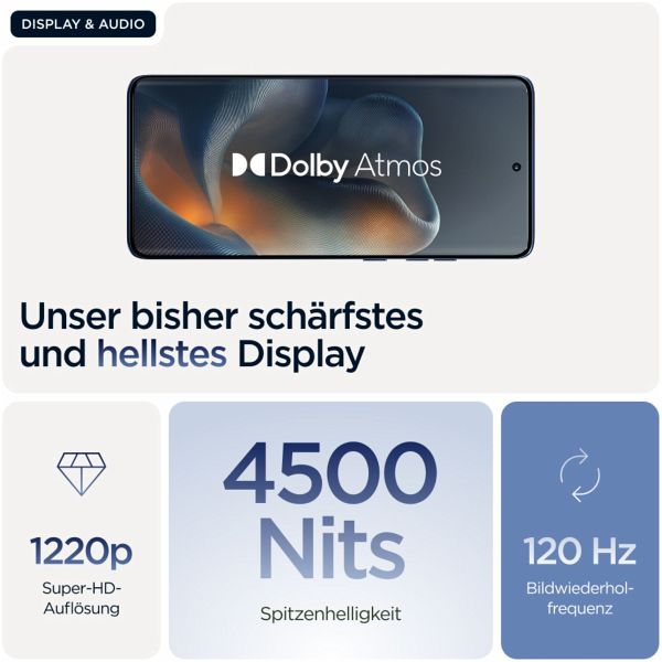 Das Motorola Edge 60 vereint modernes Design, starke Performance und innovative Funktionen in einem schlanken, leichten Gehäuse. Mit seinem hochwertigen 6,7 Zoll pOLED-Display, der schnellen Bildwiederholrate von 144 Hz und brillanter Farbdarstellung ist das Smartphone ideal für alle, die Wert auf erstklassige Bildqualität legen - ob beim Streamen, Spielen oder Arbeiten.