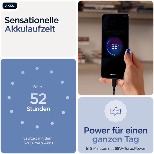 - 5000 mAh Akku mit 68 W Schnellladefunktion