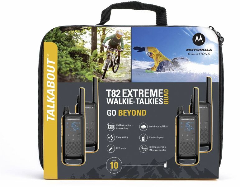 Das TALKABOUT T82 Extreme ist der robuste Reisebegleiter für alle Ihre Abenteuer. Mit der Schutzart IPx4 ist das T82 Extreme witterungsbeständig und hält auch härtesten Umgebungsbedingungen stand. Das neue verdeckte Display erleichtert das funken und aktiviert sich, wenn Sie es brauchen. Die einfache Pairing-Taste macht das Einrichten zum Kinderspiel. Eine eingebaute LED-Taschenlampe sorgt bei Bedarf für Notlicht, damit Sie Ihre Karte im Dunkeln lesen können. Und mit dem TALKABOUT T82 Extreme bleiben Sie mit dem notwendigen Zubehör und einer Reichweite von bis zu 10 km2 in Kontakt, egal ob Sie auf den harten Touren oder auf hohen Gipfeln unterwegs sind.