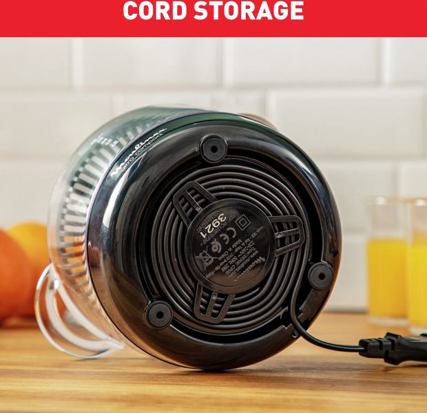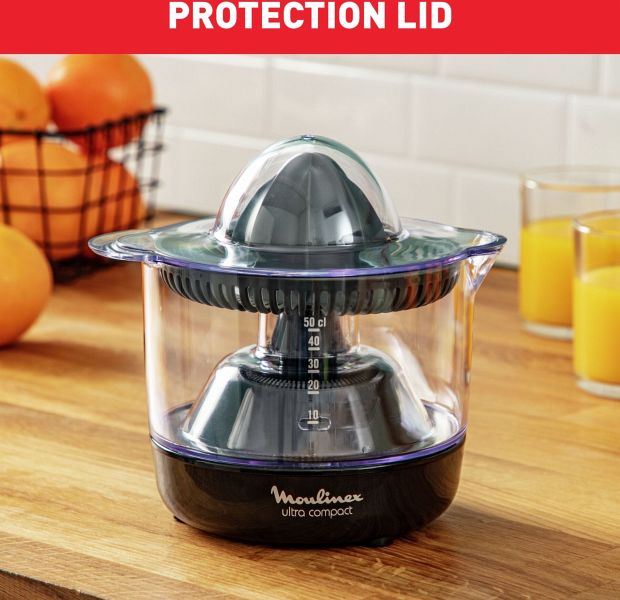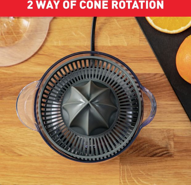 Eine kompakte Zitruspresse mit großem Fassungsvermögen von 450 ml. Kompaktes Design mit automatischer Ein- und Ausschaltung: Obstdruck-Sensor, Presskegel mit zwei Drehrichtungen für bessere Extraktion, Zitruspresse einfach zu verwenden und zu reinigen.