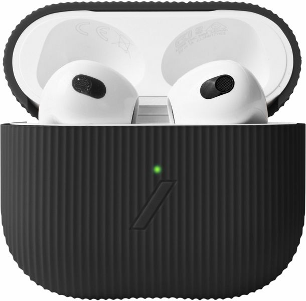 Mit dem Curve AirPods Case von Native Union sind die AirPods (3. Generation) immer optimal verstaut und geschützt. Das mit hochwertigem Silikon gefertigte Case ist sehr leicht und überzeugt außerdem mit einem modernen Aussehen. Dank des gestreiften Designs liegt das Case besonders gut in der Hand. Es bietet einfachen Zugang zu den AirPods und deren Ladeanschluss. Das Case ist kompatibel mit kabellosem Laden.