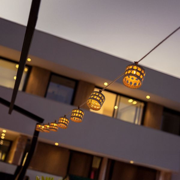 Die ALBA-Deko-Girlande verwandelt deinen Balkon oder Garten bei jeden Anlass in ein stilvolles Event. Sie passt sowohl in Innenräumen als auch im Freien, egal ob auf der Terrasse, für Feste im Sommer, aber auch für Weihnachten oder Halloween. Mit Lampions aus Naturfasern sorgt diese Girlande für eine einzigartige Atmosphäre.