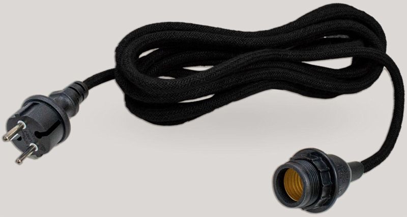 • Schwarzes Textilkabel und Deckenbaldachin für stilvolle Optik