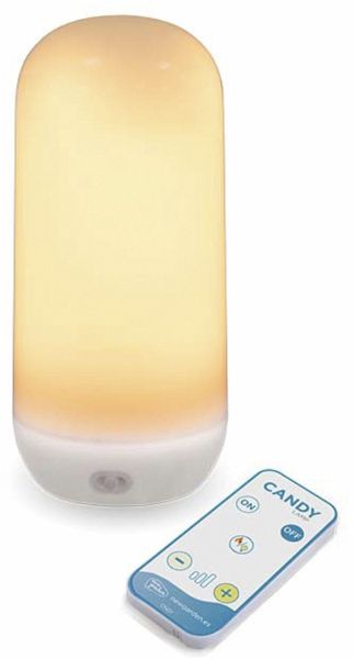 Die Glühbirne wird mit einer Fernbedienung geliefert, mit der Sie die Lampe ein- und ausschalten, die Lichtstärke regulieren und die Funktionen Festlicht oder Flammeneffekt nutzen können.