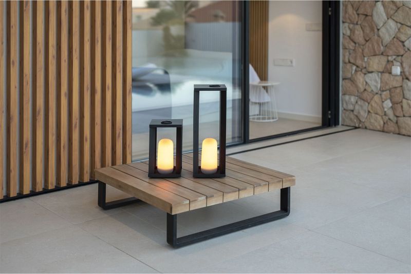 Siroco ist eine Metalllaterne, die nicht installiert werden muss. Man muss nur die Glühbirne in die Nähe des Metallsockels der Laterne bringen, und schon haftet sie dank des integrierten Magneten. Ihr innovatives Design macht diese Laterne zu einem Muss für Ihre Gartendekoration.