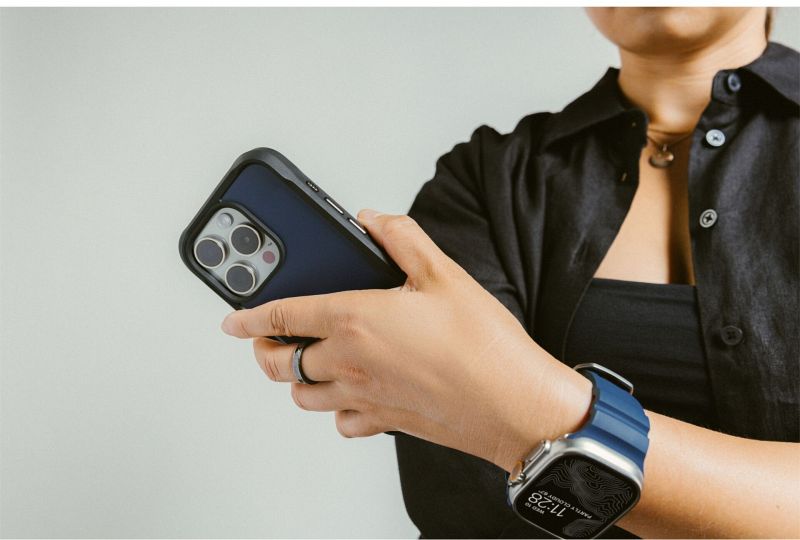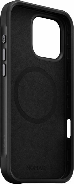 Das überraschend leichte, aber dennoch äußerst robuste und widerstandsfähige Nomad Rugged Case bietet einen rundum Schutz für das iPhone. Dank des Rahmens aus Polycarbonat, erhöhte Ränder zum Schutz des Displays und Bumpern an den Ecken des Smartphones wird es zuverlässig bei Stürzen aus bis zu 4,5 Metern Höhe geschützt. Die matte Rückseite aus PET verhindert Fingerabdrücke am Case und bietet rutschfesten Halt, sodass es angenehm und sicher in der Hand liegt, während die eloxierten Aluminiumtasten und die Textur des Polycarbonat Rahmens für besonderen Grip sorgen. Mit der von der restlichen Hülle hervorragenden Bumpern an den Ecken liegt das iPhone trotz der erhöhten Kamera flach auf. Der umfassende Schutz des Rugged Case betont zudem einen modernen Look in stilvoller Farbe. Dank der integrierten, starken Magnete ist die Hülle außerdem mit beliebigem MagSafe-Zubehör kompatibel. Im Inneren schützt Mikrofaser vor Kratzern auf der Innenseite.