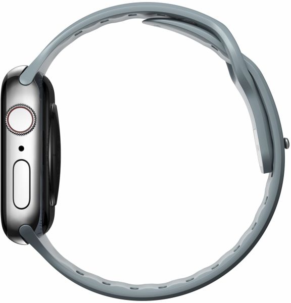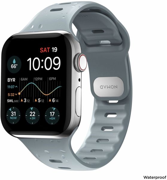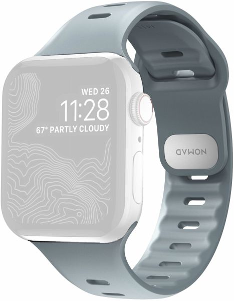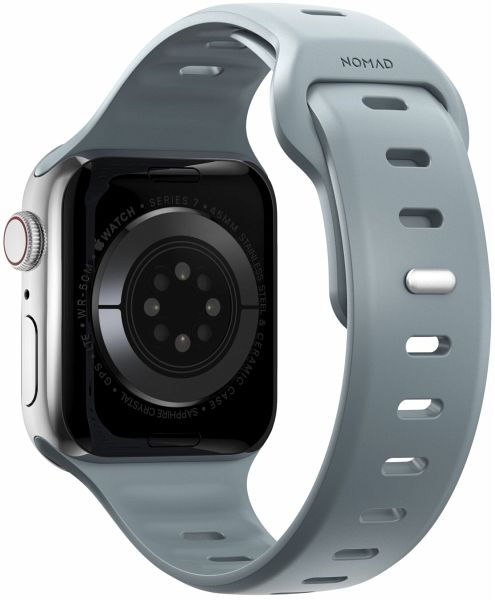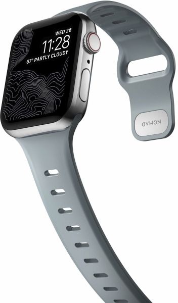Das Nomad Sport Band Slim verleiht jeder Apple Watch einen modernen und sportlichen Look und ist dabei ideal für intensive Workouts sowie den alltäglichen Gebrauch. Das Sportarmband hat ein leichtes und atmungsaktives Design, das aus einem weichen, flexiblen Fluorkautschuk für hohen Tragekomfort besteht. Es ist besonders schlank und deshalb auch für schmale Handgelenke geeignet, besitzt aber dennoch die Widerstandsfähigkeit eines größeren Bands. Das Material Fluorkautschuk ist ein Fluorelastomer, das antimikrobiell wirkt und ganz einfach mit Seife und Wasser gereinigt und desinfiziert werden kann. Das Material gewährleistet ein ideales Gleichgewicht zwischen Komfort und Haltbarkeit. Die Flexibilität von FKM sorgt außerdem für ein angenehmes Tragegefühl. Dank der inneren Belüftungskanäle auf der Unterseite ist das Armband atmungsaktiv.