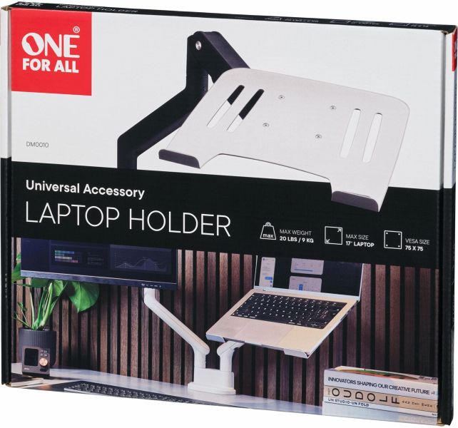 Laptop-Halter | VESA 75 x 75 | Traglast: 9 kg | Für Laptops bis 17" | Abmessungen (L x B x H): 30 x 2 x 26,5 cm | Gewicht: 1,29 kg | Farbe: Silber
