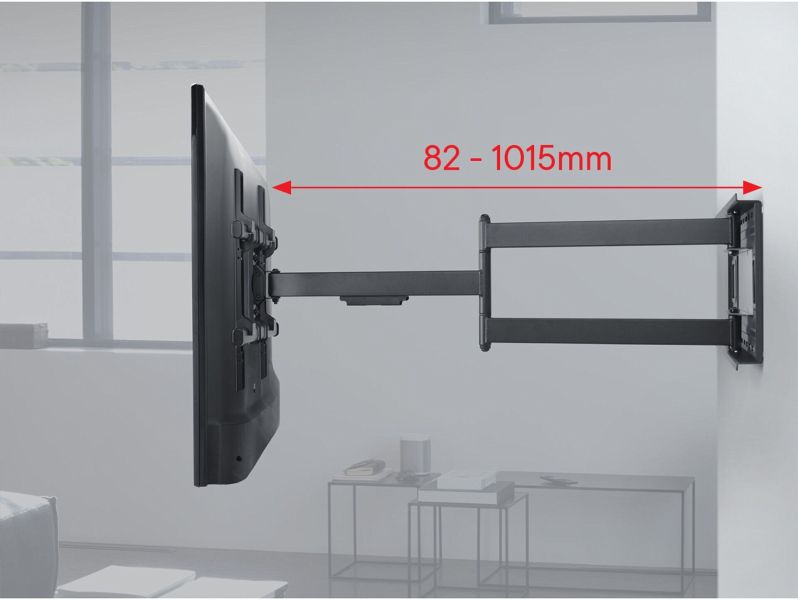 - Die Ausrichtung lässt sich im Anschluss an die Installation einfach nachjustieren. So ist jederzeit die exakte und gerade Aufhängung des TV-Gerätes möglich