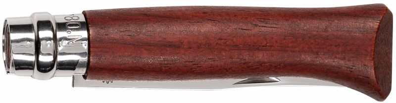 Der Griff des Messers ist aus Padoukholz gefertigt, die Klinge ist aus rostfreiem Stahl.