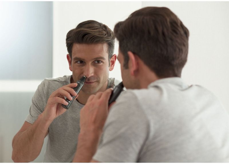 Ein klarer Blick in den Spiegel zeigt: Alles sitzt. Mit diesem Trimmer bringst du Gesichtshaare schnell in Form - ob vor dem Meeting, auf Reisen oder zwischendurch. Die Klingen erfassen Haare in Nase, Ohren und an den Brauen zuverlässig. So gelingt dir ein gepflegter Eindruck, ohne Aufwand und ohne Umwege.