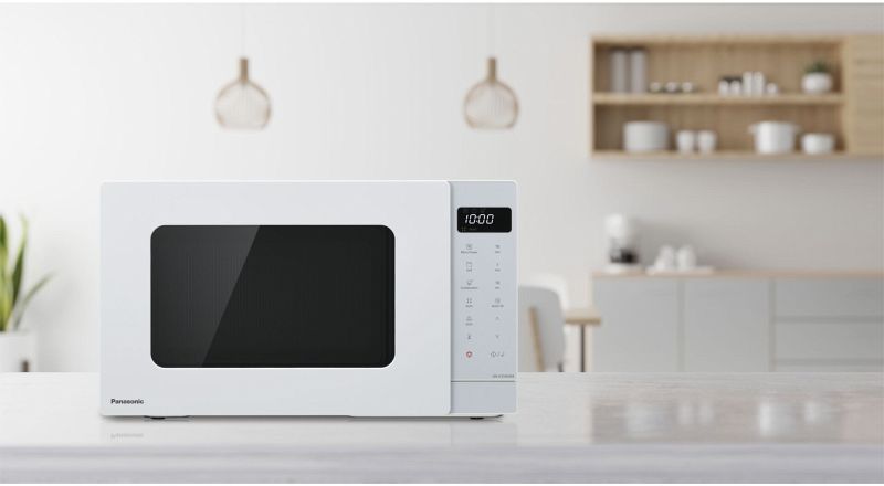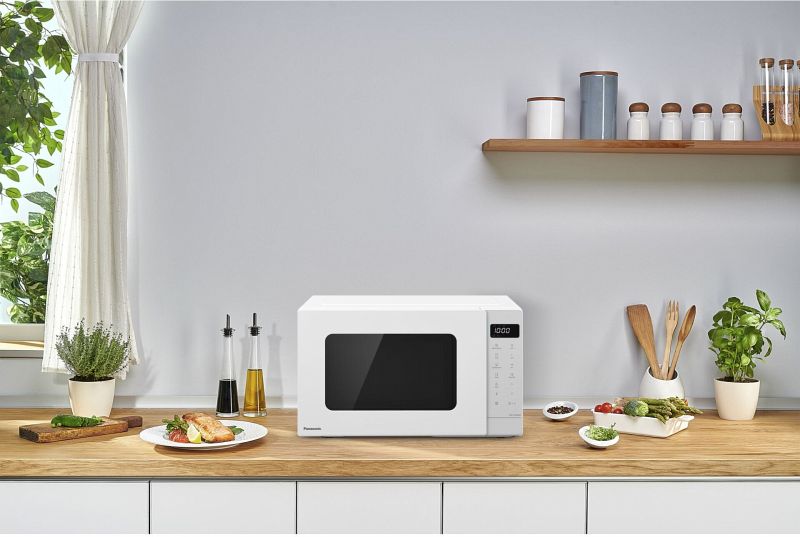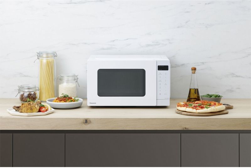 Der Panasonic NN-K35 Grill-Mikrowellenofen fügt sich dank seines minimalistischen, modernen Designs nahtlos in jede Kücheneinrichtung ein. Vom klaren weißen LED-Display über die kompakte Größe bis hin zur matten Türoberfläche und dem glatten Touchpanel - mit dieser Mikrowelle können Sie jeden Tag das Kochen genießen.