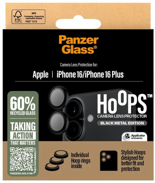 Panzerglass Hoops schwarz Kameraschutz - Zubehör für iPhone 16 16 Plus