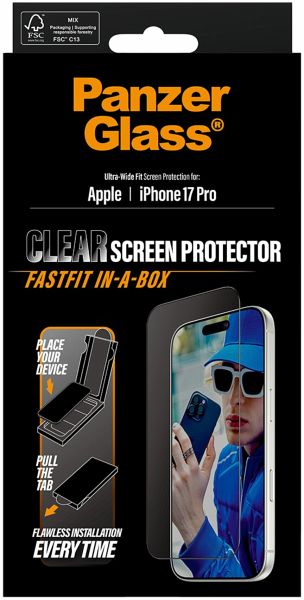 PanzerGlass Displayschutz Ultra-Wide Fit mit schwarzem Rahmen für iPhone 17 Pro