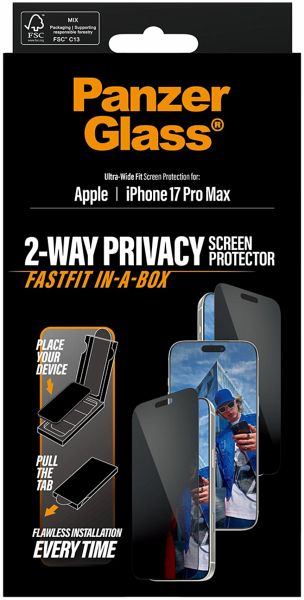 PanzerGlass Privacy Displayschutz mit schwarzem Rahmen für iPhone 17 Pro Max