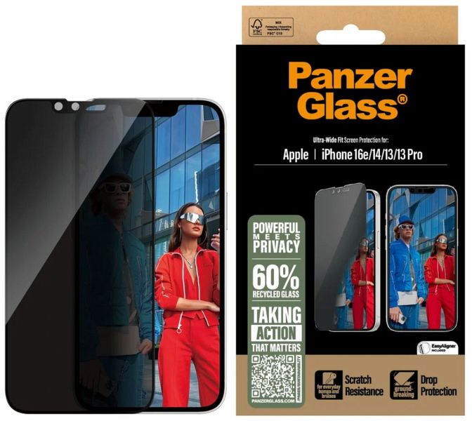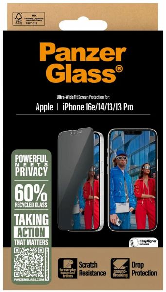 PanzerGlass Privacy Screen iPhone 16e 14 13 & 13 Pro Ultra-Wide-Fit