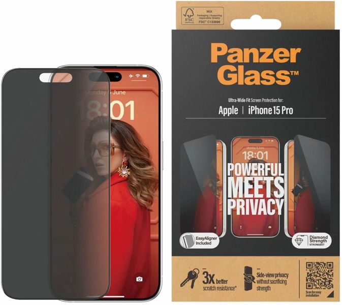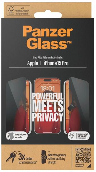PanzerGlass Privacy Screen Protector iPhone 15 Pro Ultra-Wide-Fit