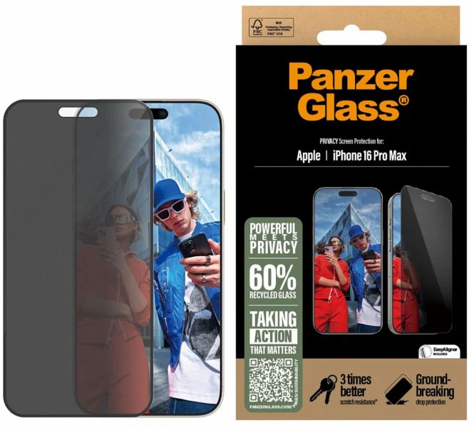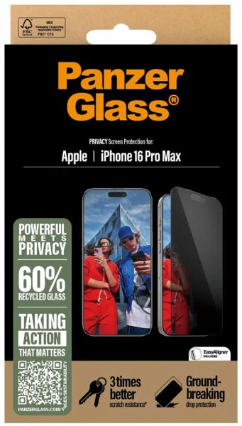 Deine Daten verdienen den besten Schutz - und genau das bekommst du mit diesem Displayschutz von PanzerGlass. Der integrierte Sichtschutzfilter sorgt dafür, dass niemand außer dir sehen kann, was auf deinem Display passiert. Ideal für die Bahn, das Café oder das Büro, wenn du deine persönlichen Nachrichten oder Bankdaten checkst. Zusätzlich schützt das Glas dein Display vor Kratzern und Stößen - und das sogar dreimal besser als frühere Privacy-Modelle. So bleibt dein iPhone 16 Pro Max nicht nur sicher, sondern auch in Top-Zustand! Dank des EasyAligners ist das Anbringen kinderleicht. Die Schritt-für-Schritt-Anleitung und der QR-Code zum Online-Video machen es dir noch einfacher.