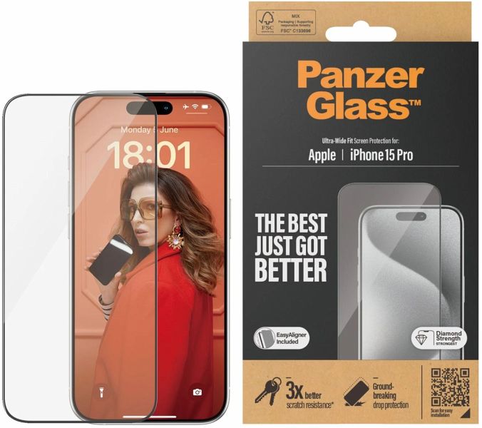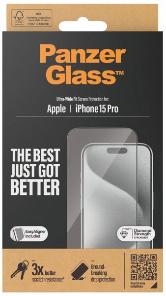 PanzerGlass Screen Protector iPhone 15 Pro Ultra-Wide-Fit mit EasyAligner
