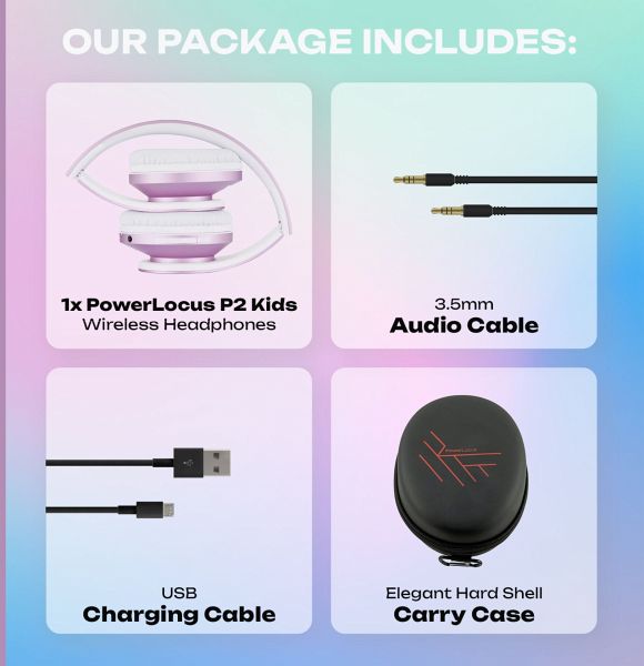 PowerLocus P2 bietet klare Höhen und satte Bässen. Die begrenzte Lautstärke schützt das Gehör der Kinder und sorgt dafür, dass die Musik in einer sicheren Lautstärke wiedergegeben wird. Der Kopfhörer sind perfekt für Musik, Hörbücher und Lerninhalte geeignet.