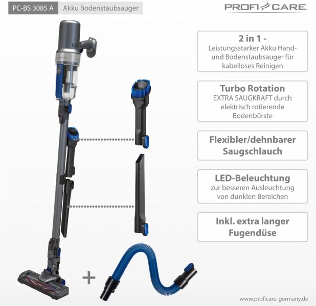 ProfiCare PC-BS 3085 A Akku Bodenstaubsauger - kabellose Reinigung für dein Zuhause