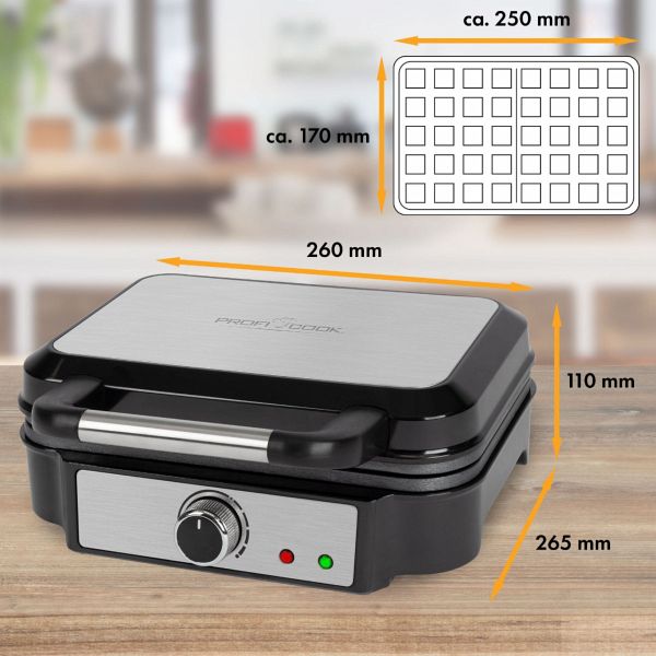 Durchmesser Backfläche (cm): 25 x 17Waffeln pro Backvorgang: 2Bräunungsgrad wählbar: stufenlosFertigmeldung: optischKontrollleuchte: Ja