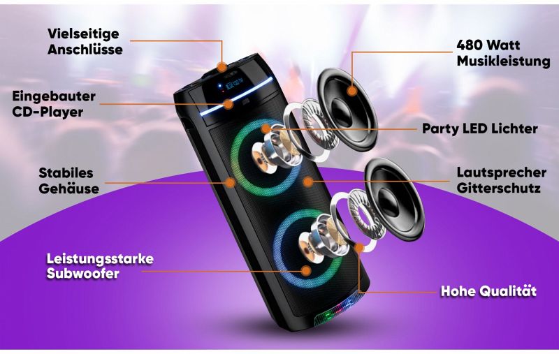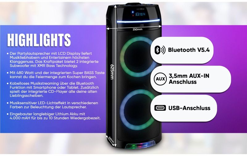 Reflexion Bluetooth Disco Lautsprecher PS10BTCD/N