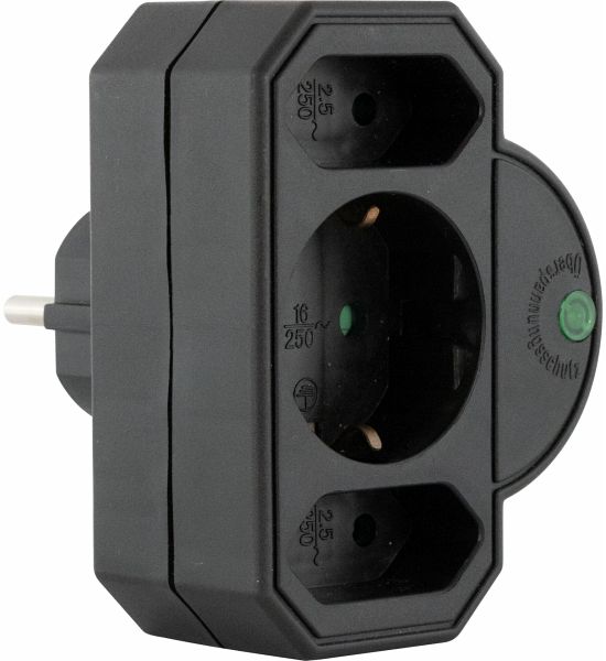 Entdecken Sie den praktischen Mehrzweck-Adapter, der es Ihnen ermöglicht, drei Geräte sicher an einer Steckdose anzuschließen. Diese innovative Lösung schützt Ihre wertvollen Elektrogeräte effizient vor Schäden durch Überspannungen. Dieser einfach zu verwendende Zwischenstecker passt in jede gängige Steckdose und bietet durch sein solides, kompaktes Design langanhaltende Zuverlässigkeit. Für zusätzliche Sicherheit sorgt der erhöhte Berührungsschutz, während eine optische Anzeige den aktiven Überspannungsschutz visualisiert.