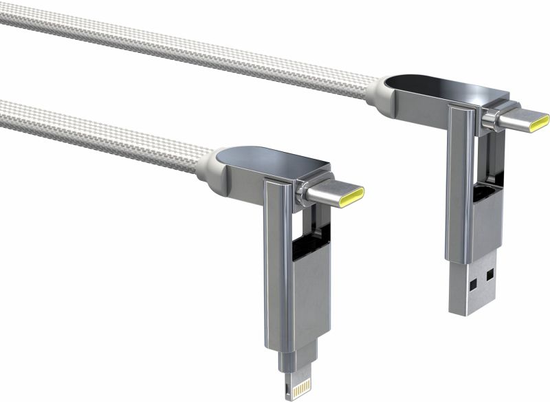 Die Stecker des Multi-Ladekabels bestehen aus einem Zink-Metall-Gehäuse und einem N52-Magnet, während die Kabelummantelung aus Nylon und TPU gefertigt ist. Im Kern des Kabels kommen Aramidfasern zum Einsatz, welche umgeben von 200 geflochtenen Kupferdrähten einen schnellen Stromfluss fördern. Für eine minimalistischen und aufgeräumten Arbeitsplatz lässt sich das 6-in-1 Multi-Ladekabel mit den entsprechenden magnetischen Kabelführungen kombinieren. Dabei kann das Metall-Gehäuse der Anschlüsse magnetisch an der Kabelführung befestigt werden oder das Kabel entlang der Kabelführung ideal auf dem Schreibtisch angeordnet werden.