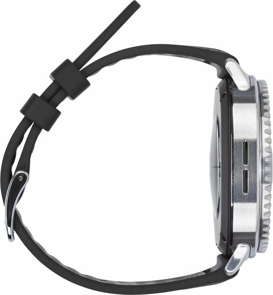 Material Armband: KautschukMaterial Gehäuse: EdelstahlFarbe Armband: schwarzFarbe Gehäuse: silberBreite (mm): 46,4Höhe (mm): 10,6Tiefe (mm): 46Gewicht (g): 63,5