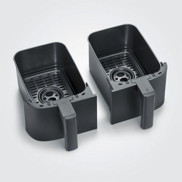 Mit zwei unabhängig nutzbaren Garkammern bereitest du verschiedene Speisen gleichzeitig zu - zeitsparend und abgestimmt. Die Funktionen zur Synchronisierung der Garzeiten helfen dir dabei, alles gleichzeitig servierfertig zu haben. Die zehn voreingestellten Programme erleichtern dir die Auswahl und sorgen für gleichmäßige Ergebnisse. Die Reinigung gelingt unkompliziert, da die Körbe herausnehmbar und für die Spülmaschine geeignet sind.