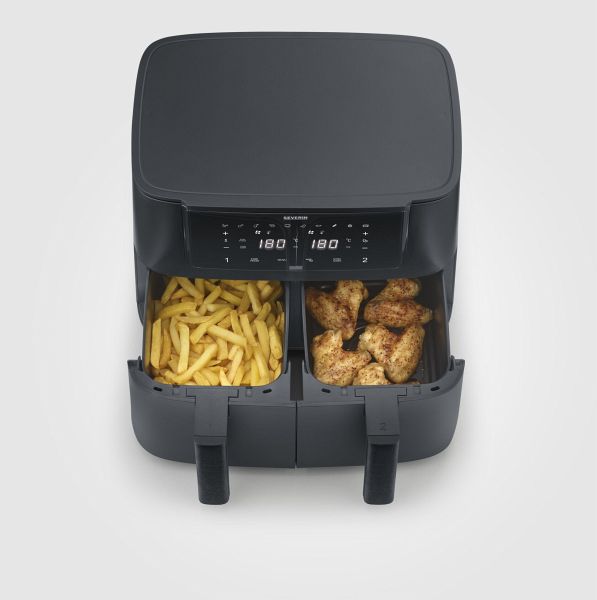 Severin Black Line Dual Heißluftfritteuse - Doppelkammer-Fritteuse mit Touch-Bedienung