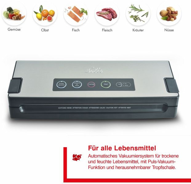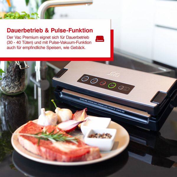 Tauchen Sie ein in eine Welt der Frische mit dem Solis Vac Premium, Typ 574 Vakuumiergerät. Mit seiner Vielzahl an innovativen Funktionen ist dieses Gerät der Schlüssel zu länger haltbaren Lebensmitteln ohne Konservierungsstoffe.