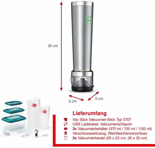 Solis Vakuumiergerät Vac Stick Starter Set - Kabelloses Lebensmittel- und Wein-Konservierungssystem