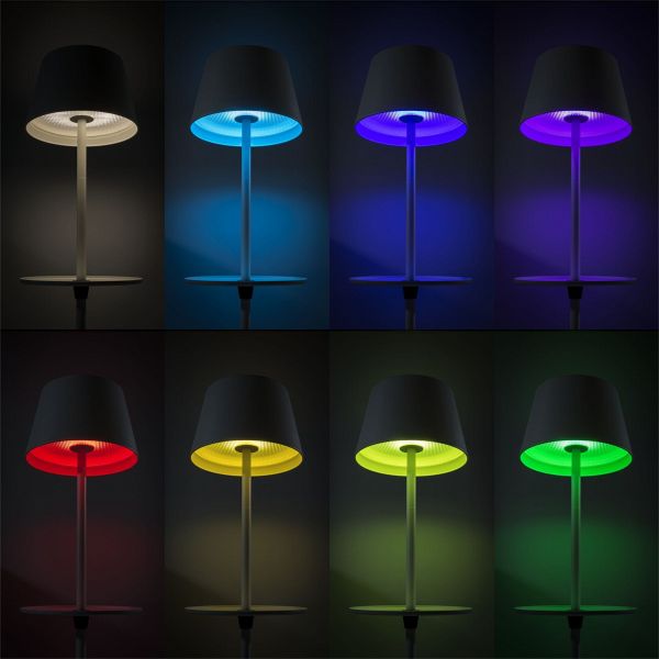 Die Akku-Stehleuchte GARCON aus hochwertigem Aluminium besitzt einen praktischen, beweglichen Tisch und lässt sich in 3 verschiedenen Höhen zusammenstecken. Dank der IP65 Schutzart kann sie im Innen- und Außenbereich verwendet werden. Über Touch-Sensoren lassen sich die gewünschte Lichtintensität und 9 Lichtfarben für eine perfekte Beleuchtung einstellen. Die Akku-Stehleuchte wird zum Aufladen einfach auf die mitgelieferte Ladestation gestellt.