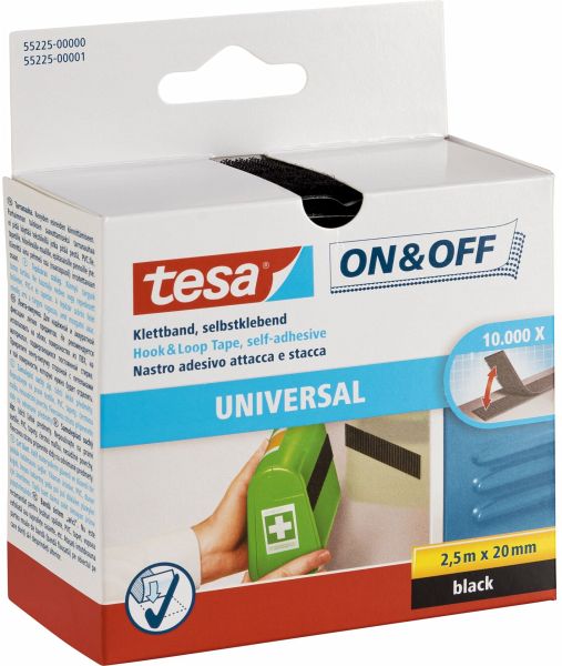 Tesa Klettklebeband 2,5m x 20 mm, on & off schwarz 55225