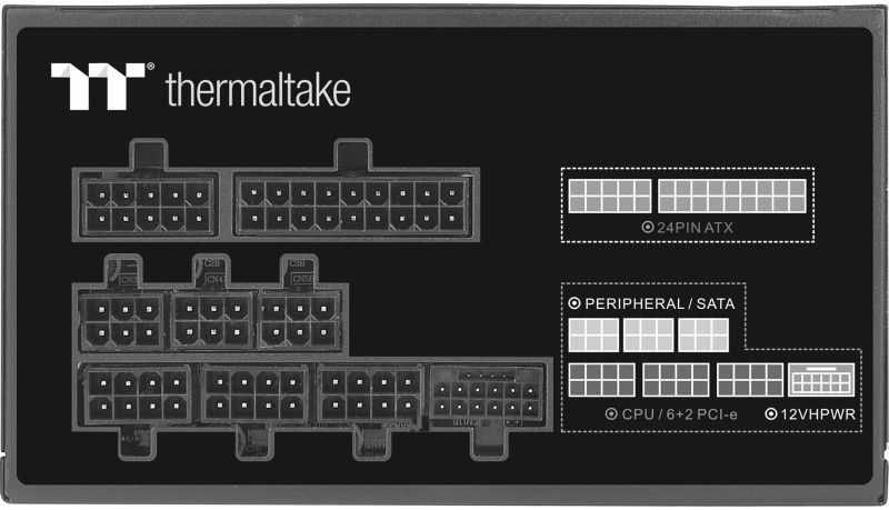 ATX-Mainboard: 1x 24pinATX12V: 2x 4+4pinPCIe: 4x 6+2pinPCIe 5.0 (12VHPWR): 1x 300WPeripheral P4: 4x 4pinS-ATA: 8x 5pinFDD / Floppy: 1x
