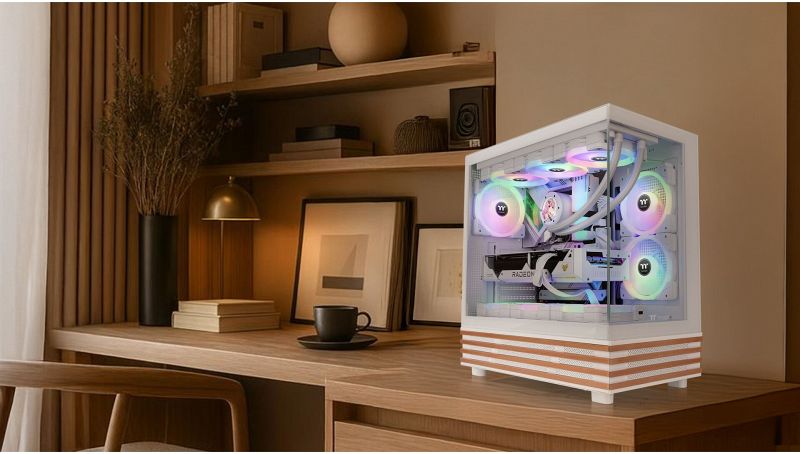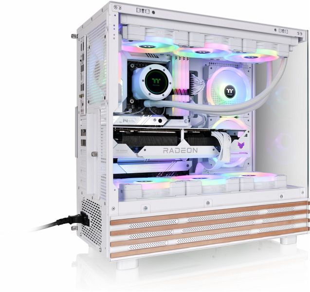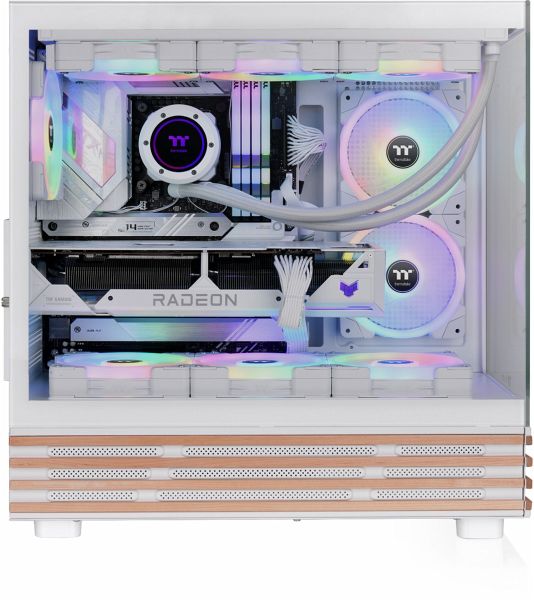 Dieses Gehäuse bringt klare Linien und eine elegante Optik in dein Setup. Die Front und die linke Seite bestehen aus gehärtetem Glas, eingefasst in Holz, sodass du deine Hardware stilvoll präsentieren kannst. Drei vorinstallierte ARGB-Lüfter sorgen für eine gleichmäßige Luftzirkulation und ein harmonisches Lichtspiel.