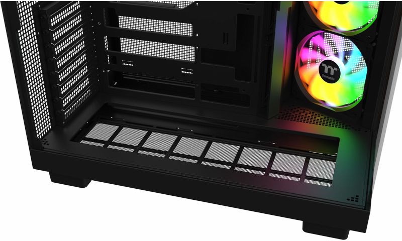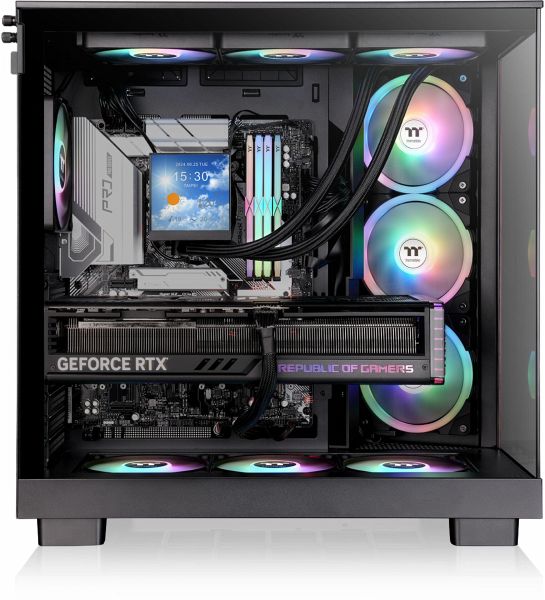 - Seitenteile aus gehärtetem Glas ermöglichen freie Sicht auf die Komponenten