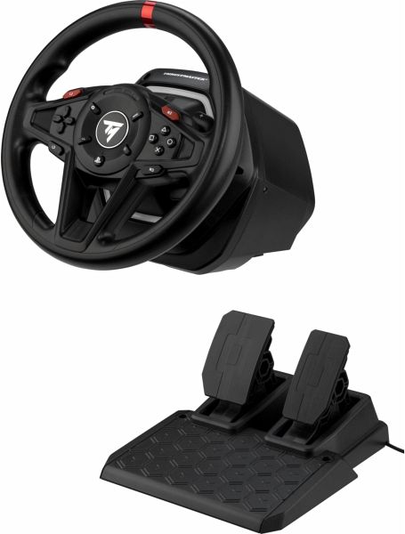- Lieferumfang: Rennlenkrad T128, Pedalset T2PM, 48 Watt Netzteil mit Netzkabel, Klemmsystem mit Schraube, USB-Kabel, Sicherheitsauslösekabel