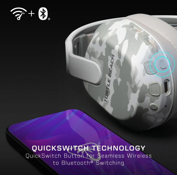 Der ultraleichte, bewegliche Kopfbügel und die weichen Memory-Foam-Ohrpolster bieten dir einen bequemen Sitz, sodass du das Headset kaum spürst. Die QuickSwitch-Taste ermöglicht ein einfaches Umschalten zwischen kabellosen und Bluetooth-Verbindungen, sodass du flexibel bleibst.