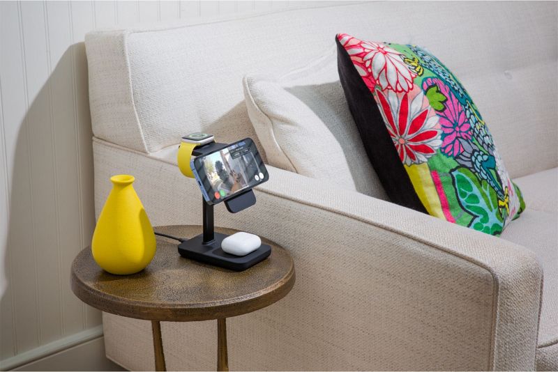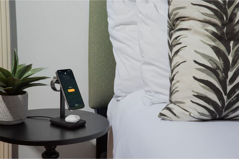 Platzsparend und effizient - mit dem HiRise Magnetic 3-in-1 Wireless Charging Stand von Twelve South können iPhone, Apple Watch und AirPods gleichzeitig und kabellos aufgeladen werden. So bleibt der Raum stets ordentlich und lässt alle drei Geräte zentral und stilvoll an einem Ort laden. Zudem ist die magnetische Ladestation nicht nur sehr platzsparend, sondern bietet dank der praktischen MagSafe Halterung die Möglichkeit, auf dem iPhone schnell und unkompliziert Nachrichten auf einem Blick zu lesen oder die Uhrzeit zu prüfen - ganz ohne Anheben.