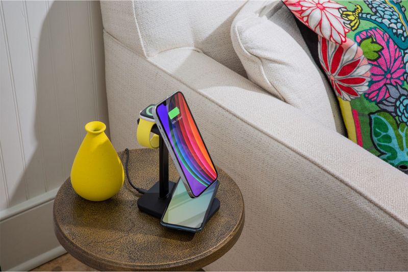 Die kabellose Basis bietet sowohl Platz für AirPod-Ladecases als auch für ein zweites magnetisch aufladbares Smartphone. Abgerundet wird der HiRise Magnetic 3-in-1 Wireless Charging Stand mit einem USB-C- Anschluss, der für ein müheloses Anstecken der HiRise Ladestation sorgt.