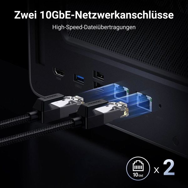 - 2x NVMe-Steckplätze (2280): Für schnelles Caching oder SSD-Speicher bis zu 8 TB Gesamt (2x 4 TB)