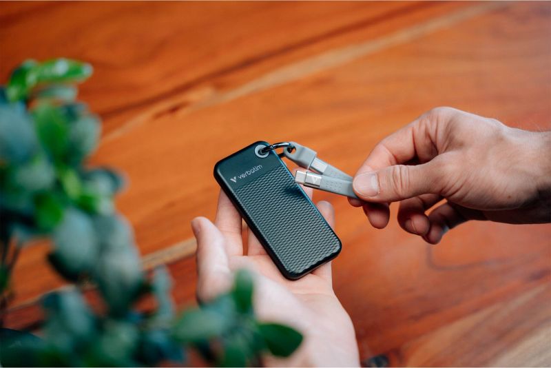 Die Pocket SSD von Verbatim wurde für ultimative Tragbarkeit entwickelt. Verbatim ist mit einem Gewicht von 58 g ultraleicht und mit einer Länge von knapp 96 mm klein genug, um in Ihre Gesäßtasche zu passen.