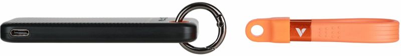 Mit dem mitgelieferten Schlüsselring lässt sich die SSD sicher an einer Gürtelschlaufe oder einem Rucksack befestigen. Der durchdachte Kabelhalter bewahrt das USB-C-Kabel ordentlich und verhedderungsfrei auf.